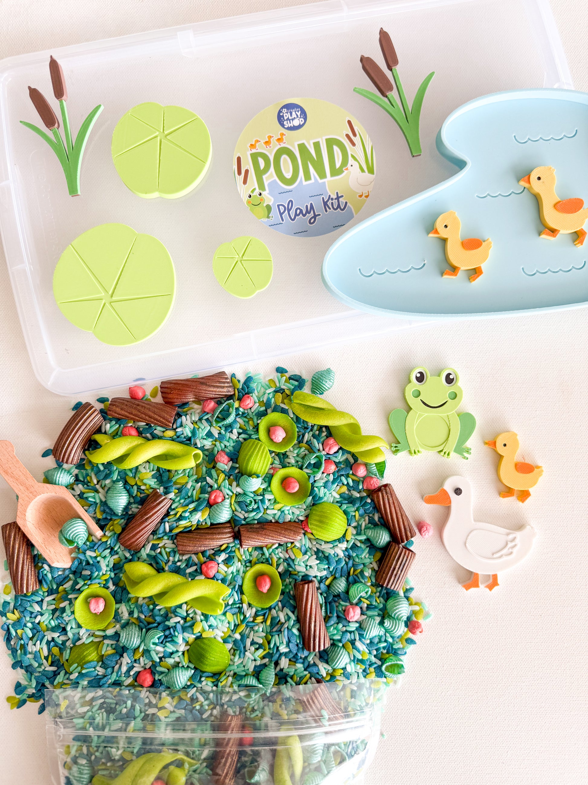 - 7 cups of Pond-inspired sensory mix
