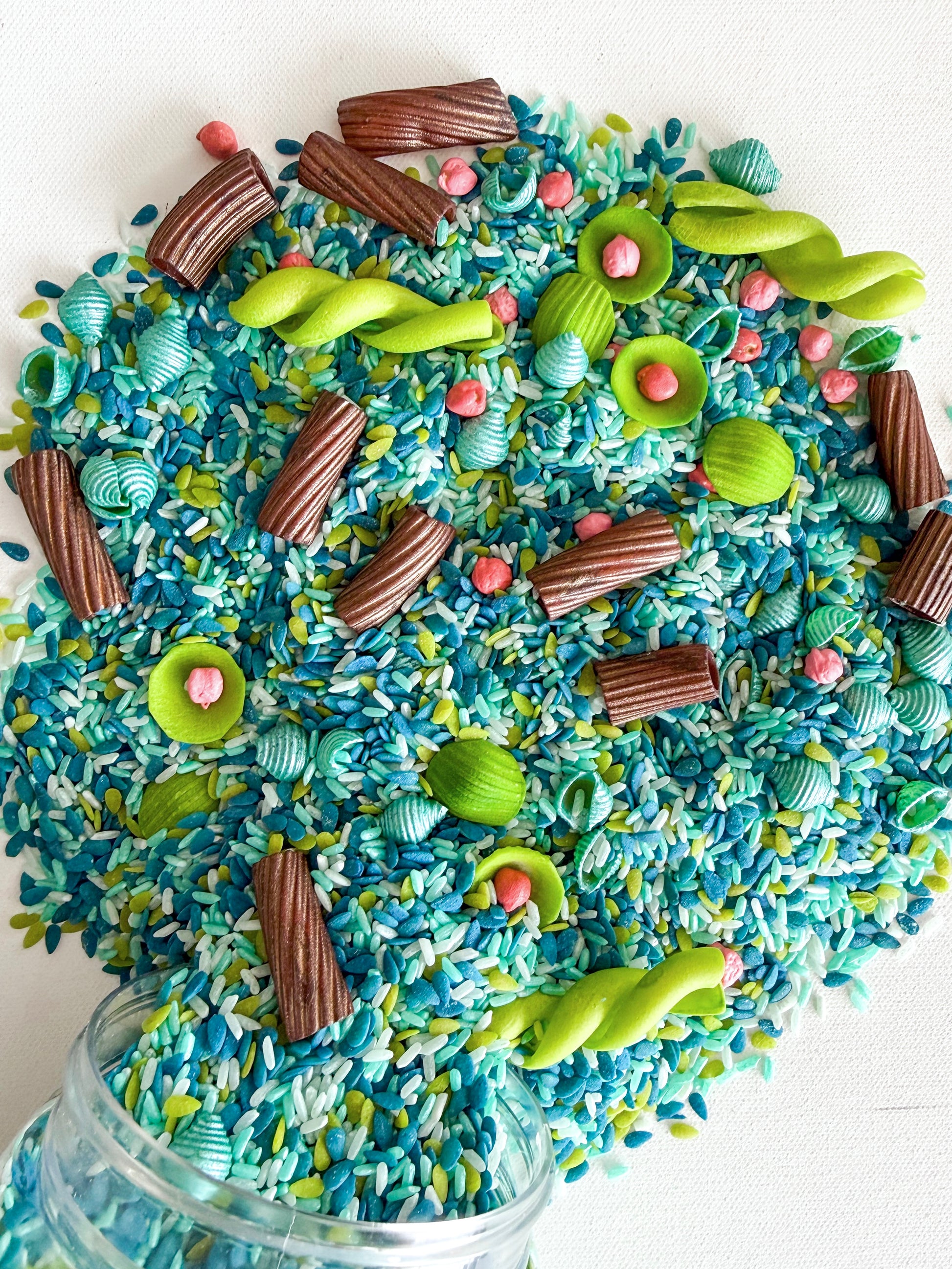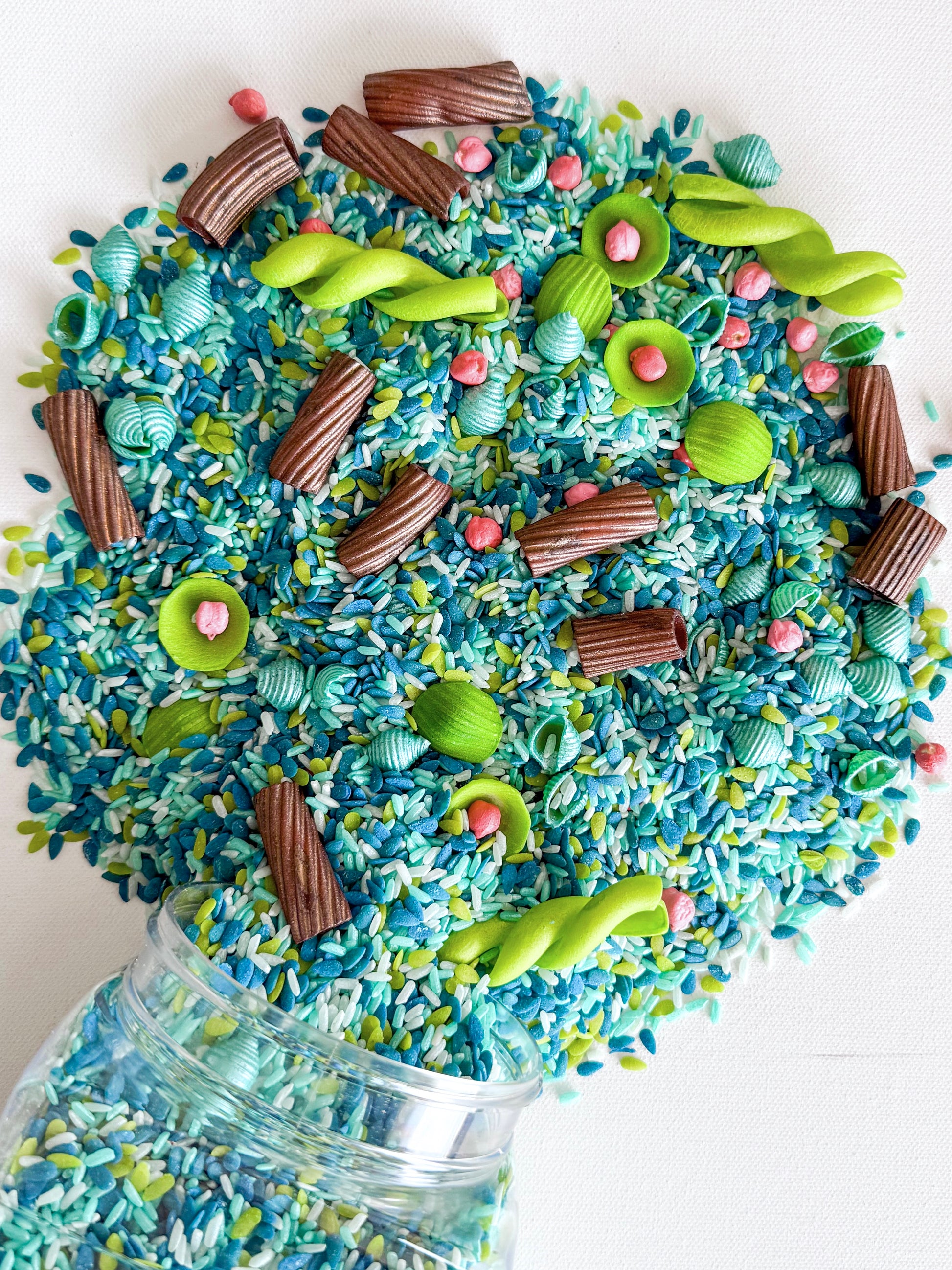 Pond Sensory Mix is a calm, nature-inspired blend perfect for scooping, pouring, and imaginative play in sensory bins, play trays, or small world setups. Encourages open-ended, hands-on play with no prep required.